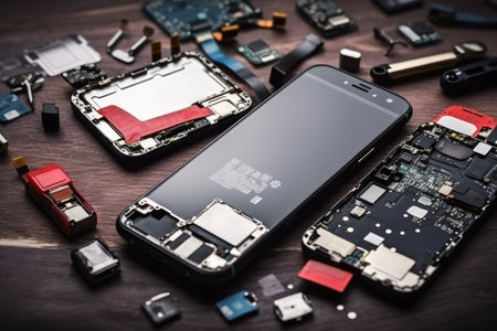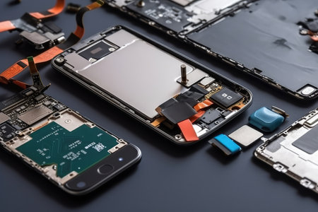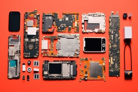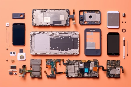 Showcasing intricate smartphone components displayed on a flat surface for technology enthusiasts