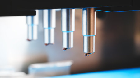 This image depicts advanced laboratory equipment designed for precise liquid handling, showcasing automation technology in a clean, high-tech research environment.