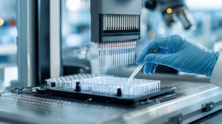 Scientist conducting experiment with pipette in laboratory