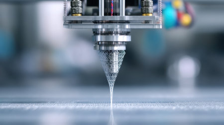 Close-up view of a 3D printing nozzle extruding material, showcasing the precision and innovation in manufacturing technology for modern applications.