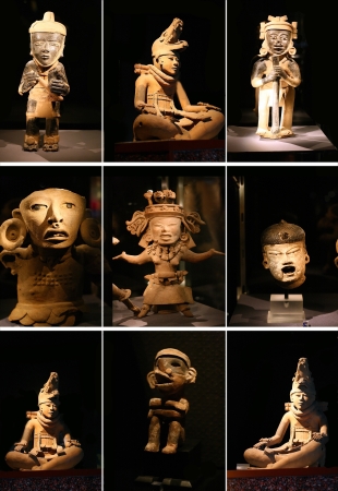 Mayan relics displaying intricate carvings and symbolic iconography.