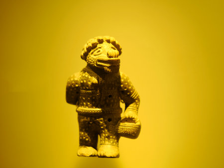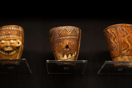 BOGOTA, COLOMBIA - JULY 3, 2024: Superb ceramic pottery on display in the Museo del Oro (Gold Museum). Isolated on background