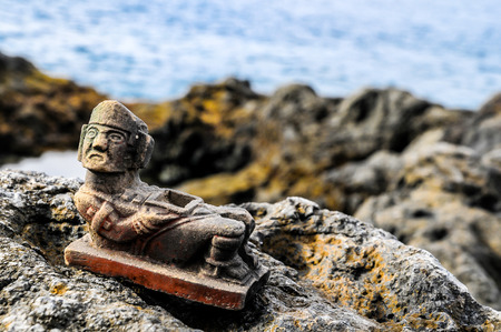 Ancient Maya Statue on the Rocks near Ocean