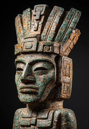Detailed and vibrant ancient Mayan mask showcasing intricate carvings and colorful design, highlighting cultural and historical significance.