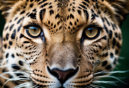 Leopard eyes reveal striking detail and unique patterns, capturing the animal gaze in its natural environment. The scene highlights the beauty and intensity of wildlife. Close-up view. Generative AI