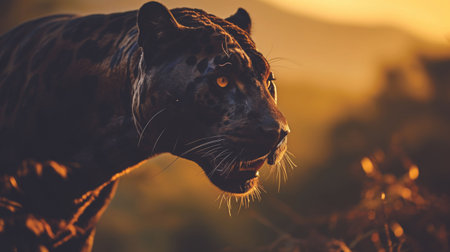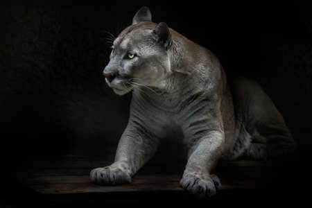 Rises carrying danger beauty and strength in cats cougar, black background