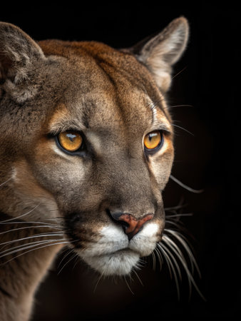 Portrait of a cougar (Puma concolor) isolated on black background