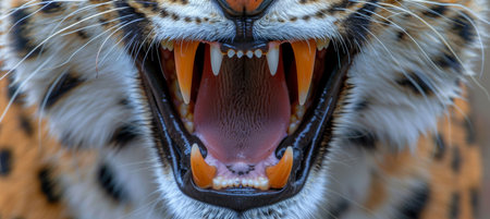 Close up view of the teeth and mouth of a wild animal in sharp focus for detailed observation