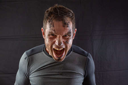 Portrait of expressive man painted with black color.