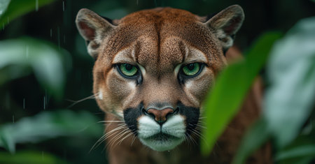 Intense gaze of a cougar in the wild