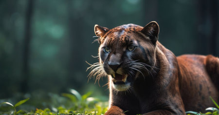 Roaring cougar or mountain lion hunts its prey