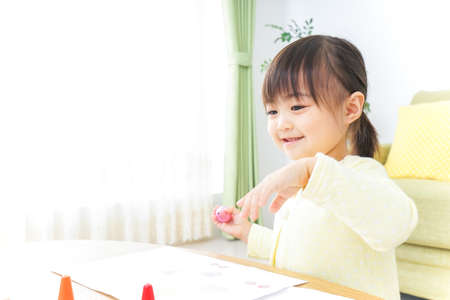 young girl is having fun practicing and learning with toys at home with her mother to develop her skills