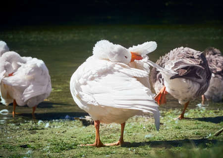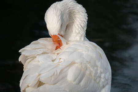 Close Up of Goose Preening Feathers in the Morning Sunshine