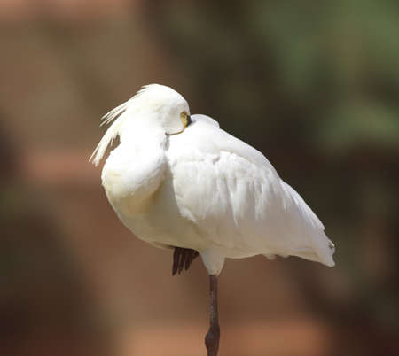 closeup of a manchurian crane preening its feathers, typical bird behavior, Endangered animal specie from Japan