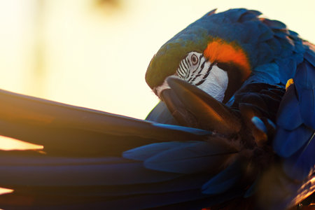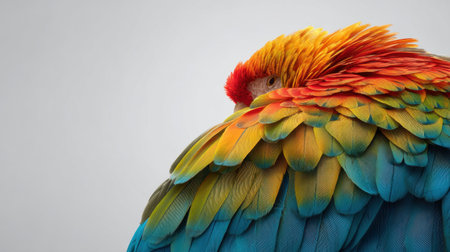 This captivating image showcases the stunning details of a colorful parrot, highlighting the exquisite feather texture. The vibrant blues, greens, yellows, and reds blend harmoniously, creating an artistic representation of nature's beauty, perfect for wildlife enthusiasts and art lovers alike.