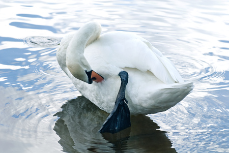 Swan cleaning feathers in the Park-the arboretum of Sochi.
