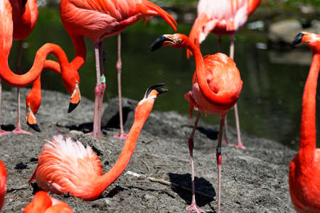 An American Flamingos or Caribbean flamingos ( Phoenicopterus ruber ruber). Colony of Flamingos
