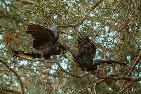 Yellow-Tailed Black Cockatoo sitting in a tree.