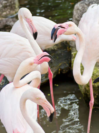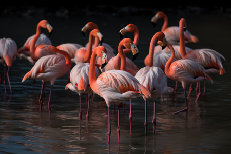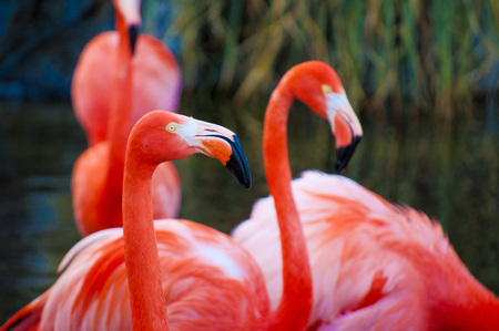 Close-up photography of a group of flamingos wading on a swamp. Captured at a bird sanctuary near the city of Cartagena in northern Colombia.