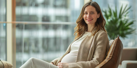 pregnant woman sitting on sofa in modern living room at home