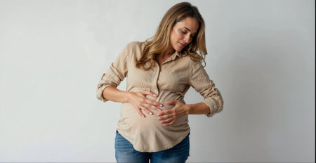 Pregnant Woman's Body with Beige Studio Backdrop
