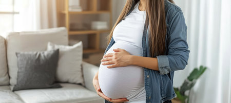 Expecting Mother Gently Cradling Her Baby Bump at Home, Embracing the Journey of Motherhood
