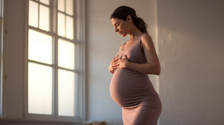 Joyful Expectant Mother Embraces Her Unborn Child, Radiating Love and Maternal Bonding Glow