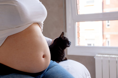 Pregnant woman with her cat, worried about the risk of toxoplasmosis infection