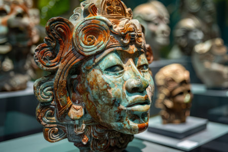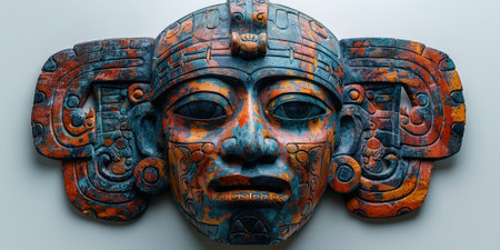 Detailed and vibrant ancient Mayan mask showcasing intricate carvings and colorful design, highlighting cultural and historical significance.