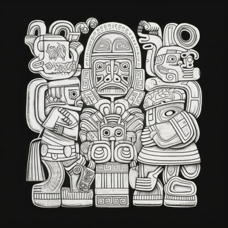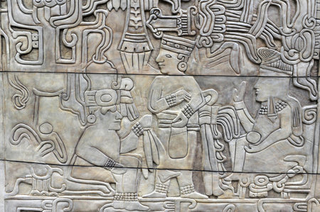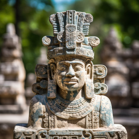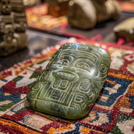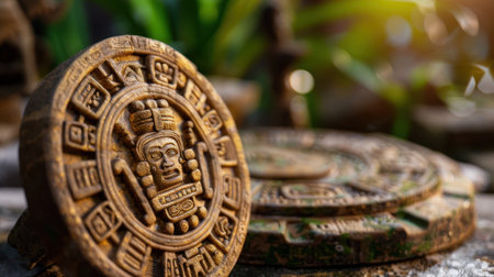 Mayan relics displaying intricate carvings and symbolic iconography.