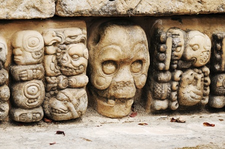 Ancient Mayan stone reliefs at Chichen Itza ruins in Yucatan, Mexico