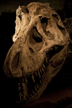 Skull of a Tyrannosaurus rex. Photographic Detail of a Huge Dinosaur dinosaur skeleton