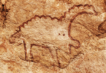 Ancient cave paintings on the walls of the cave. Cave paintings on the walls.