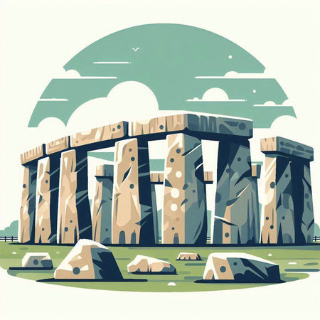 Stonehenge, ancient landmark of Greece. Vector illustration in retro style.