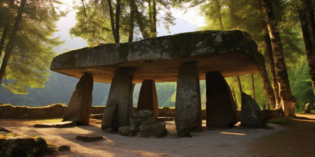 Generative AI : Dolmen of Achar de Aguas Tuertas in Hecho Valley Jacetania Aragonese Pyrenees Occidental valleys natural park Huesca Province Spain