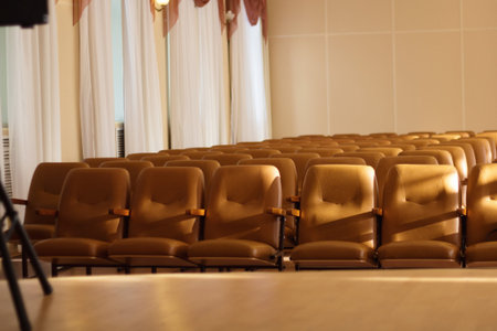 Empty comfortable brown seats in a hall .