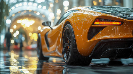 Close up of luxury sport car in showroom. Luxury car