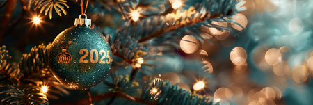 Colorful ornaments pine cones and wrapped gifts create a lively New Year atmosphere. This scene captures the spirit of holiday cheer and excitement.