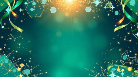 AI Generated. Golden yellow and emerald green glitter lights bokeh background for celebration with copy space