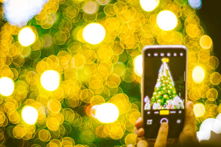 Smartphone take shot food photo, Light decorate on Christmas Tree Celebration 2017 at Department store for Christmas day and Happy New Year event