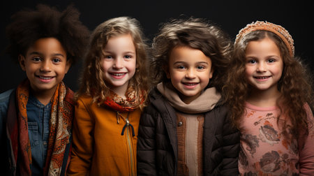 Diverse and cheerful children celebrate joy and friendship together