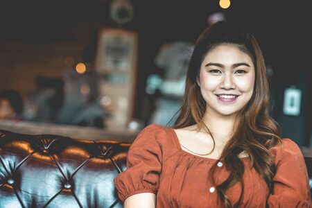 Portrait of Beautiful Attractive Asian woman smile feeling so happiness and comfortable,Beauty Concept