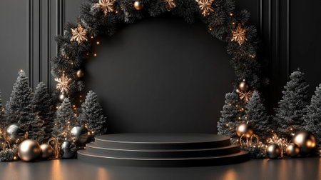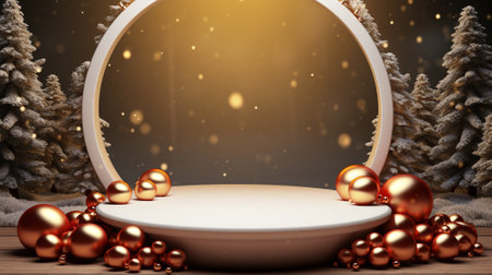 3d luxury podium christmas decoration and space for your luxury product. Christmas background concept. Generative AI.