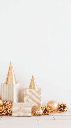 Golden decorations and beautifully wrapped gifts create a joyful atmosphere for New Year celebrations.