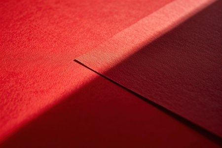 Bright red sheet of paper illuminated by light, concepts of art and design in closeup photography shot
