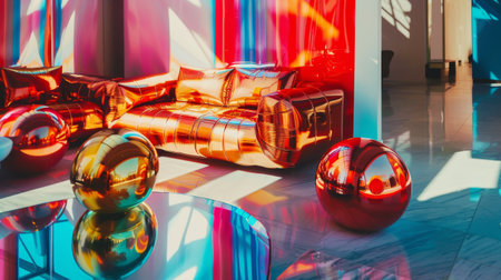 Colorful Contemporary Living Room with Reflective Furniture and Modern Decor