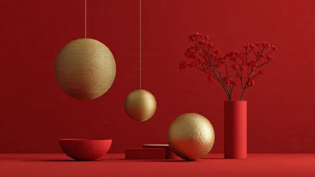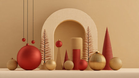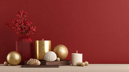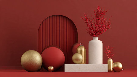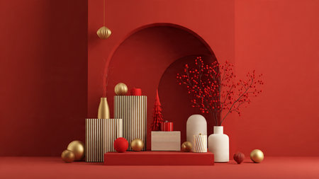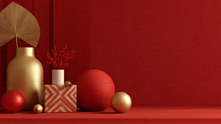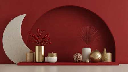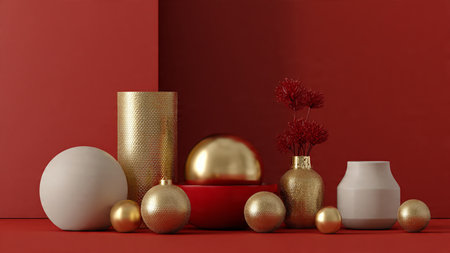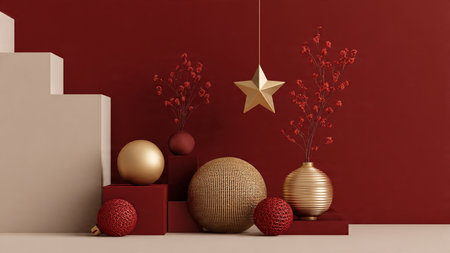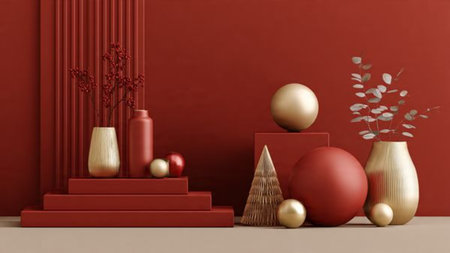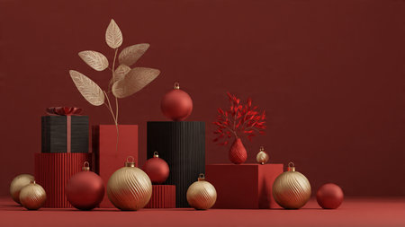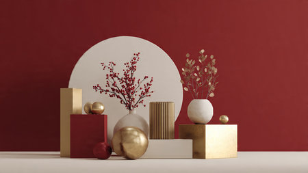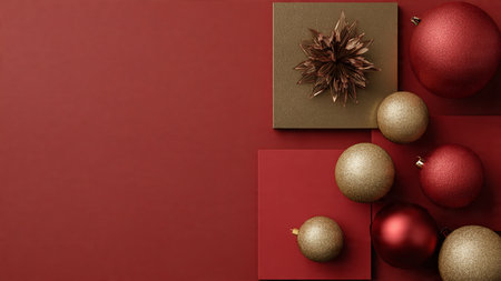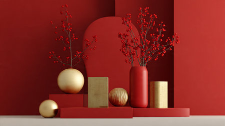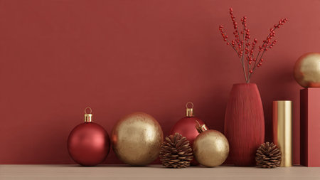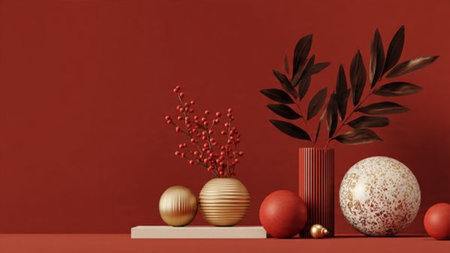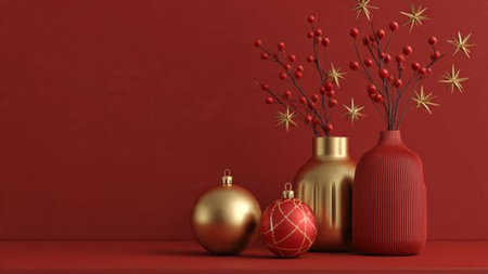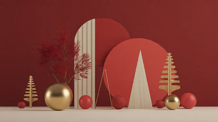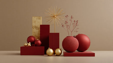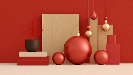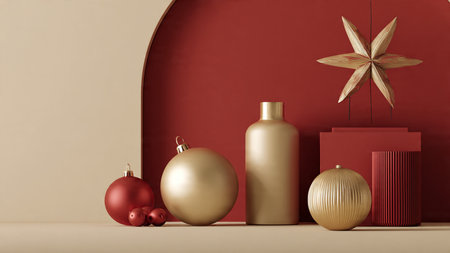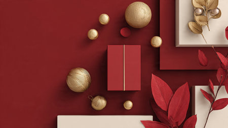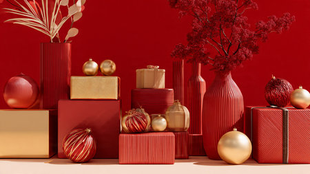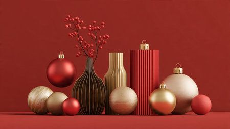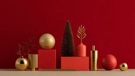 Minimal red-and-gold composition showcasing contemporary holiday elegance.