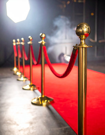 The path to fame is laid out. A plush red carpet, flanked by gleaming gold stanchions and velvet ropes, leads towards a brilliant spotlight.