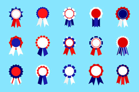 Colored badge emblem awards set with ribbon. Vector badge and emblem quality and certificate sticker illustration