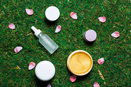 Set of cosmetic containers. Beauty aesthetic products and packagings. Blank label for branding
